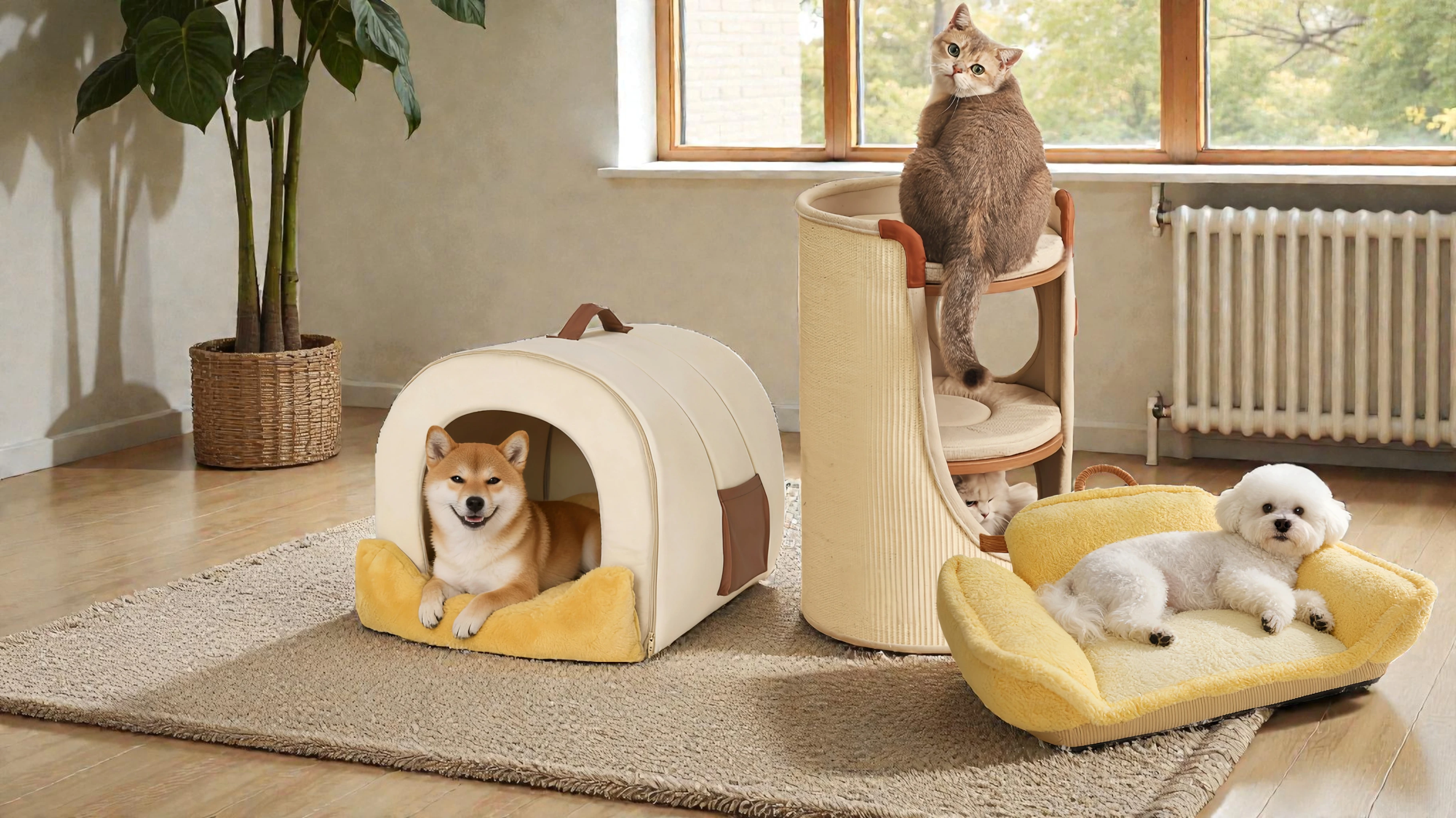Pettami Multi-Level Cat Tower with Sisal Scratching Posts and Integrated Bed for Small and Medium Cats