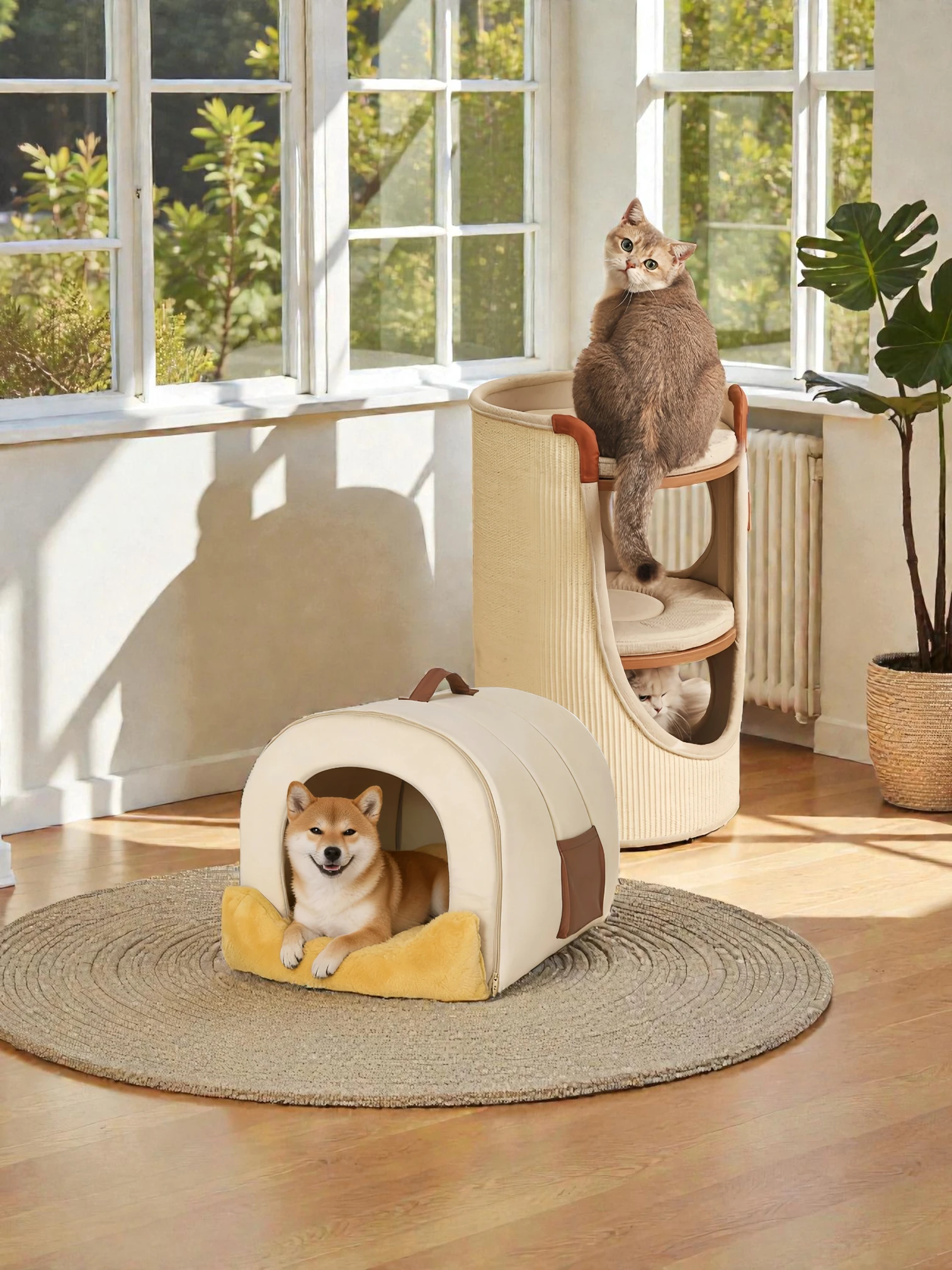 Pettami Double-Layer Sisal Cat House with Climbing Posts, Two-Level Cat Bed for Small and Medium Cats