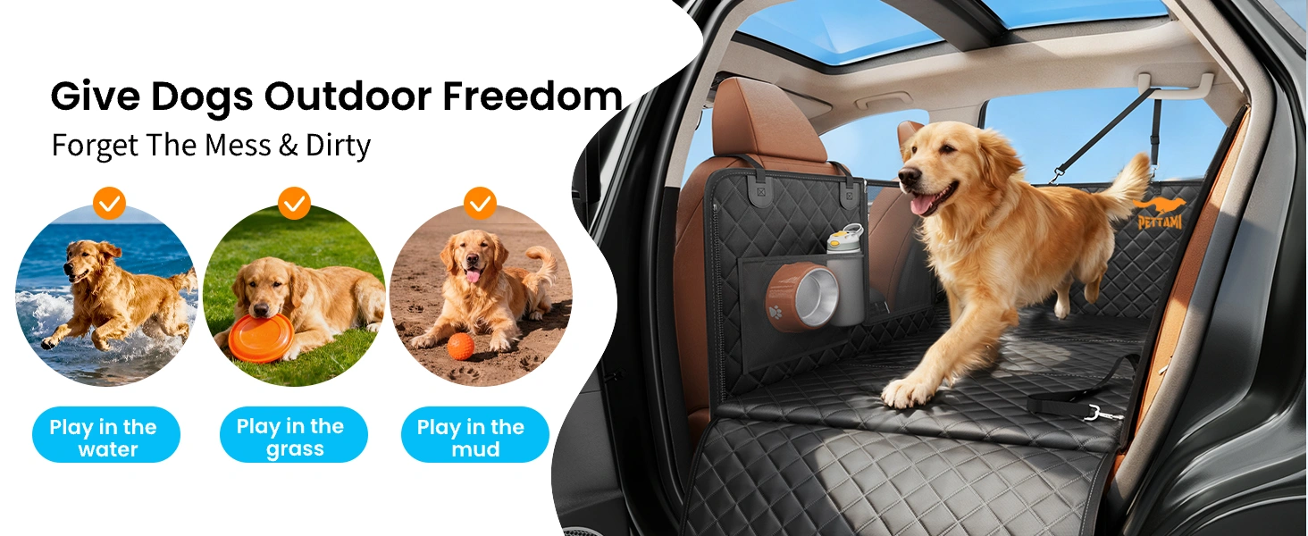 Your large breed deserves the ultimate room to stretch and relax fully. The Pettami seat cover intelligently expands usable backseat space by 45%, transforming it into a flat, spacious bed featuring premium foam sponge—perfect for sprawling. Engineered for safety, integrated seat belt openings securely tether your pet, preventing dangerous slides into seat gaps during emergency braking, ensuring absolute peace of mind in city traffic or on highway drives.